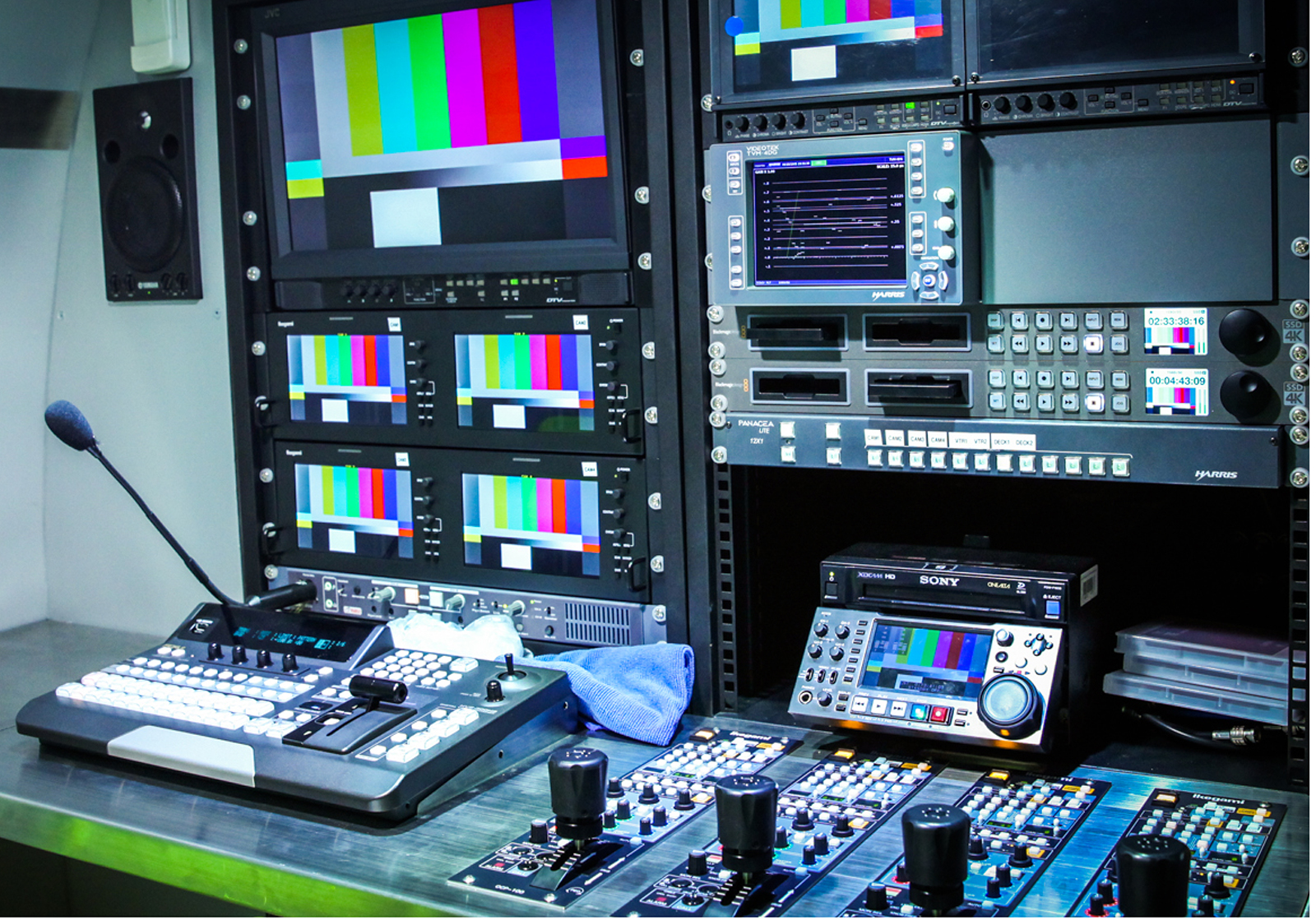 OB (Outside Broadcasting) ให้เช่า สำหรับถ่ายทำรายการทีวี ละคร และอื่นๆ ด้วยอุปกรณ์มาตรฐาน พร้อมกล้องคุณภาพ Full HD ถึง 4 กล้อง Mixer 48 CH. ระบบ Digital พร้อมไมโครโฟนไวเลส 16 ตัว และจอ LED ขนาด 6x12 เมตร